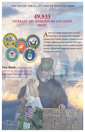 A call to action flyer to create awareness for the need to help homeless veterans.